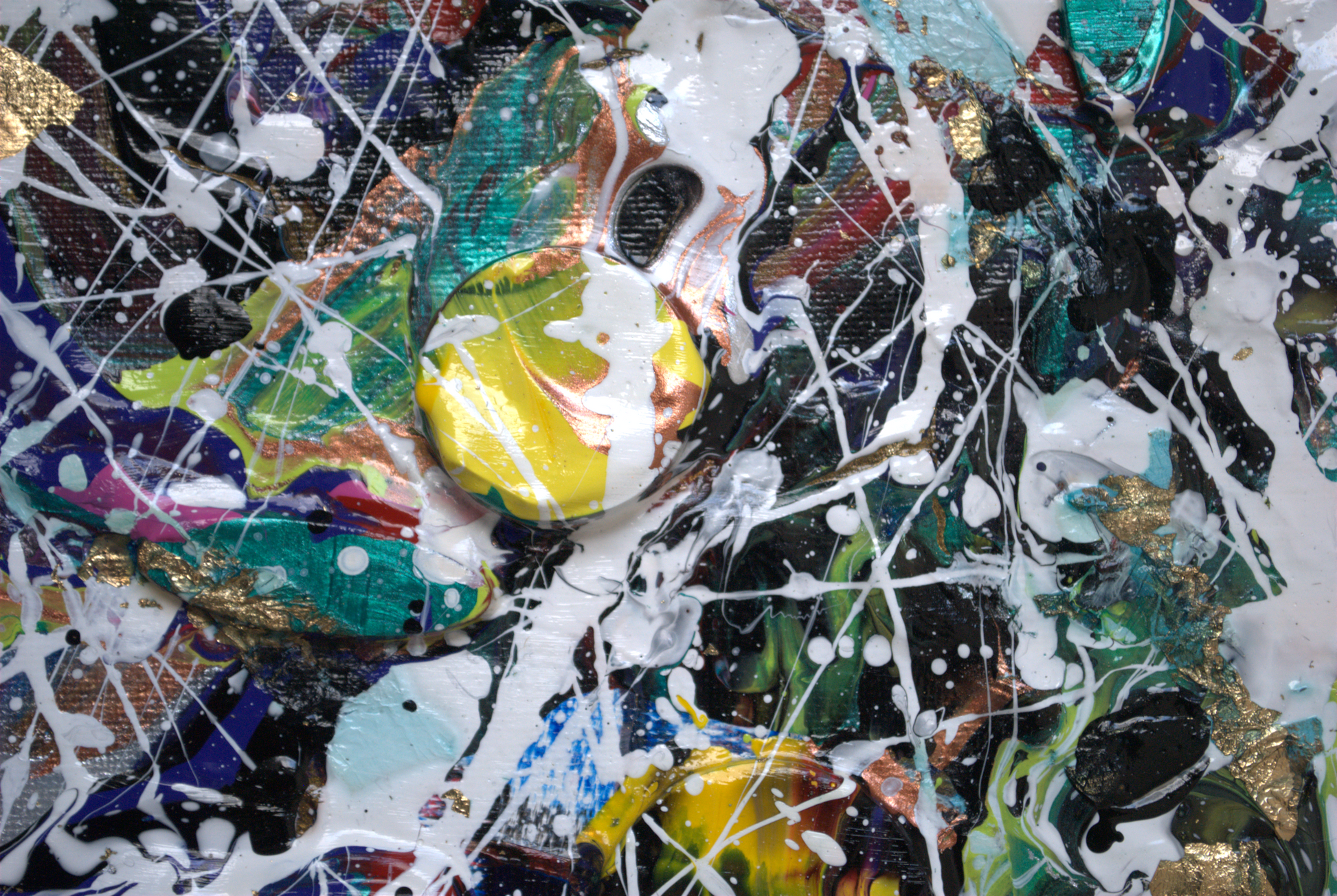 Step into the surreal world of "Dreams in Limbo," where vibrant colors collide and white splatters dance across the canvas in harmony. Experience the unique blend of texture and movement that is sure to inspire your imagination and add a splash of artistic flair to any space. Let your creativity run wild with this dynamic piece. Acrylic, mixed media on canvas. Original, 2025