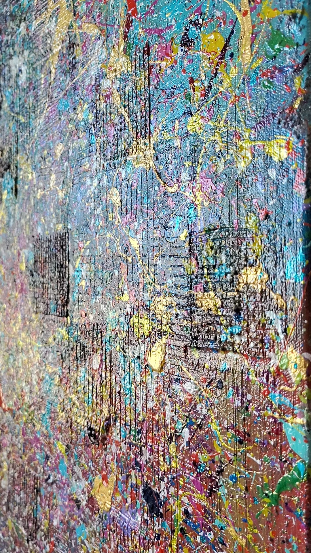 "Run Wild" brings the canvas to life with vibrant color segments that leap and dance, each bold hue drawing you deeper into its energetic world. Lively splatters add an exciting layer of spontaneity, transforming the piece into a dynamic visual voyage. This artwork isn't just something to look at—it's an invitation to immerse yourself in the joyful interplay of color. It inspires a delightful sense of freedom and creativity, sparking your imagination with every glance. "Run Wild" resonates with an infectious energy that speaks to the spirit of adventure in all of us. Acrylic on canvas, Original 2025