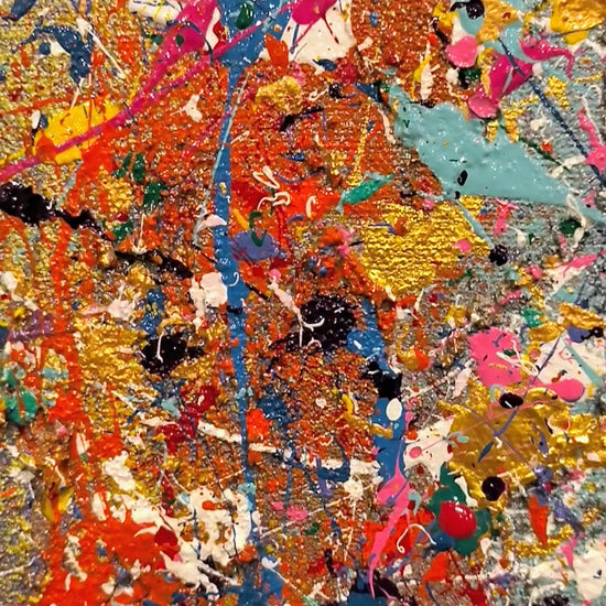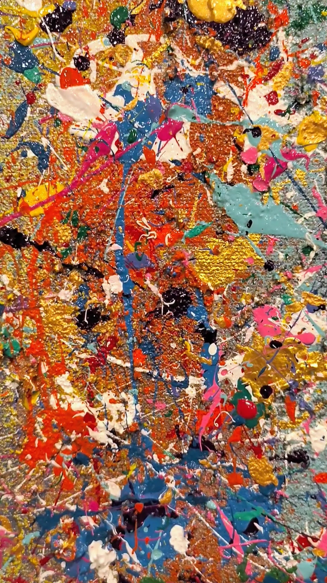 "Sands of Time" invites viewers to explore the vibrant journey of life through a stunning display of colors. The canvas symbolizes the path we walk, while the splatters of color represent the moments and experiences that shape our existence. Amidst these bursts of energy, a trail in the background evokes the gentle passage of time. As you gaze upon this abstract masterpiece, you may find yourself reflecting on your own journey and recognizing how each moment contributes to the intricate tapestry of your life. "Sands of Time" serves not only as a visual feast but also as a reminder of the beauty found in the passage of time and the vibrant experiences we encounter. Acrylic, mixed media on canvas. Original, 2025